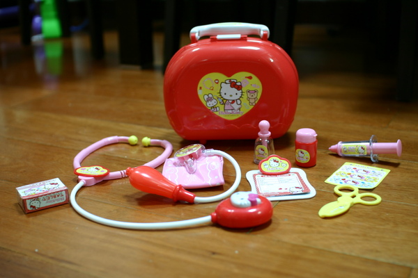 安讀阿姨送的kitty的看醫生組.超可愛.聽心跳的還會發亮有噗通噗通的聲音呢