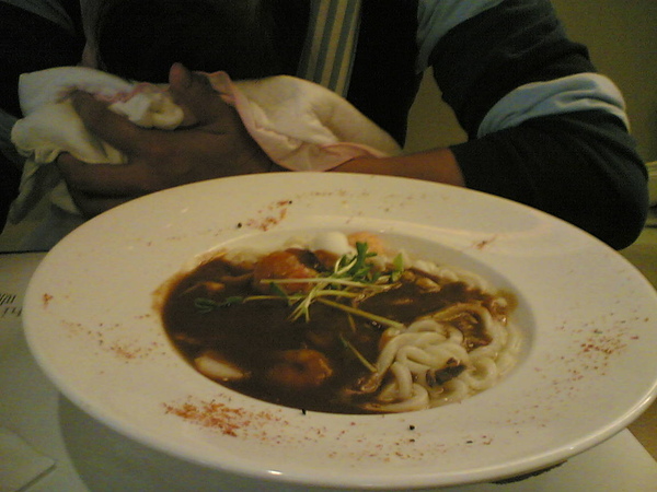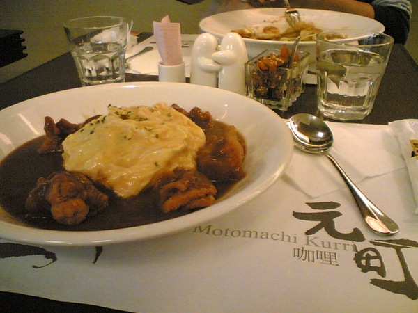 <元町的歐姆蛋雞肉咖哩>好懷念的味道..還是一樣好吃..讚..他的雞肉是炸的..很香.咖哩很濃..只可惜帶mi去位子不是很舒服.<元町的海鮮咖哩拌面>是烏龍面.q彈.挺香濃的..
