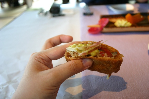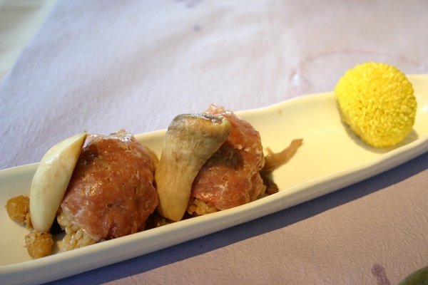 第四道菜.就很像壽司裡面包油飯還有一條小魚還有忘了..哈..只顧吃..