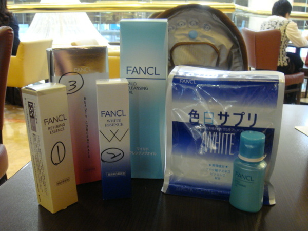 聽了ANNIE說FANCL跟另一個品牌是無添加對皮膚較好的話之後.我就變成了FANCL的愛好者.最近又去敗了這些.-卸妝油,晳美白精華液,色白雪膠囊狀食品,抗皺活顏精華乳和保濕亮顏凝萃.等一個月後有沒有變白再來跟大家報告.只能說用了他們的東西之後.明顯感覺自己的皮膚有變好哦.不過就是貴了點.但我覺得他們的行銷很利害.有還元金可以抵扣現金跟偶爾會寄送禮券.還有讓你感覺很值回票券的活動.雖然知道他是要賺你的錢啦..但還是忍不住就給他買下去了..
