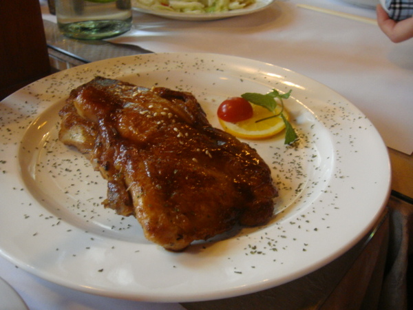 爸拔最愛點的德國豬腳.肉比一般的嫩.mii只吃這個.一直叫肉肉..我的跟同學的雞肉他都沒興趣.