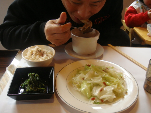 雖然點的是排餐但都有副一盤高麗菜跟飯還有小菜..高麗菜超甜超脆好好吃.小菜也很好吃呢..雖然覺得不搭.但配著吃還是把飯跟菜都