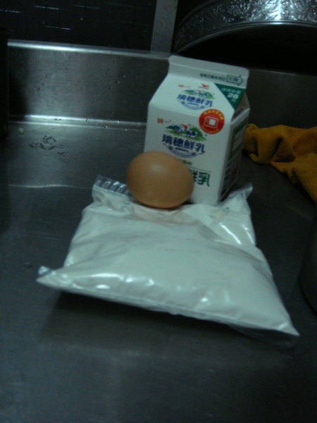 一顆蛋.一罐鮮奶(只要150CC)即可.還有一包鬆餅粉..就可以做好吃的鬆餅囉..