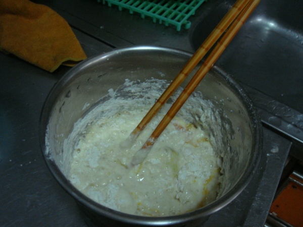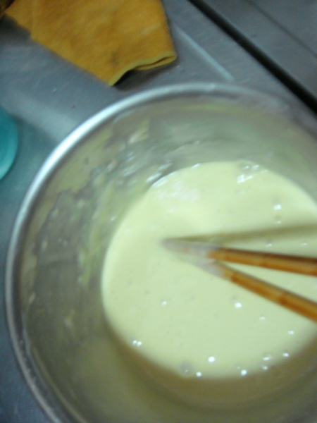 倒進去之後煎一下就好了..基本上我覺得用小火慢煎.中間會比較熟..不然中間會不熟..