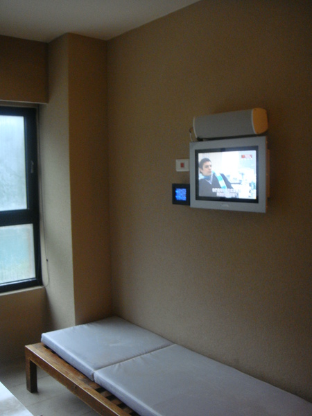 旁邊有電視..為了騙MII下水..只能看MOMO台啦..