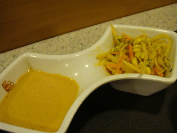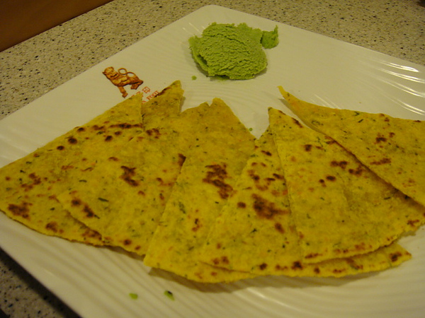 那個綠綠的醬可不是芥茉哦..是有點酸酸像檸檬但又有加其他香料的沾醬...搭配餅皮吃..真是一絕..害我一個人吃光這一盤..飽爆