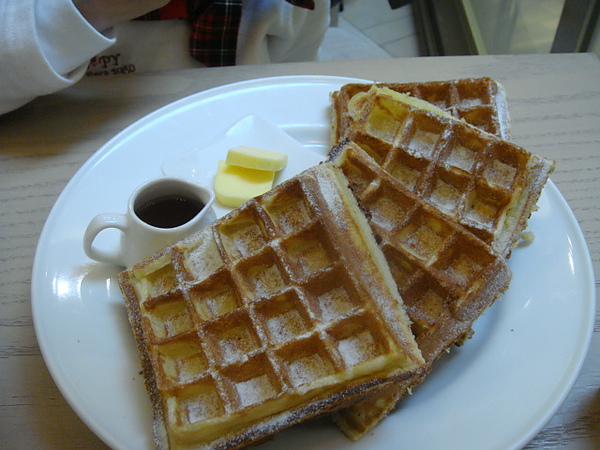 將將...原味鬆餅來了..一看到這鬆餅..我就覺得我選對家了..一吃下去..叮叮叮....眼睛一亮..這不就是我一直在找的比利時鬆餅口味嗎??跟二嫂跟我的食譜..做出來的口感真的很像..但當然這專業的還是更香更好吃啦.. 邊吃邊讚不絕口..MII餓了.也是直狂吃..當場真是對自己堅決跑這遠來台北車站的心..豎起了大拇指....這真是要評比他為捲毛可口魚鬆餅界的第一名啦..(因為哈根達斯天母店的太貴了)..下次再來試試別種口味..