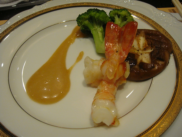 前菜..我的明蝦..有著新鮮的Q彈口感..搭上我愛的有哇沙米口味的醬汁..真是..哦..伊..嘻..啦...