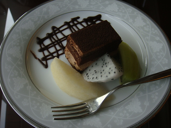 換位置吃甜點了..我點了紅茶.姐姐點咖啡..結果紅茶一來我就把檸檬汁擠進去了..結果姐姐一看是伯爵唐寧茶.我的最愛...吼..好可惜哦...我喜歡他的原味啦..因為吃太飽.也喝不下再回沖..就作罷啦..巧克力蛋糕很美味..感覺很新鮮..第一次姐姐吃東西比我還快..真是太難得啦..