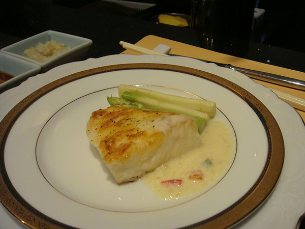 前菜..這是姐姐的圓鱈..肉質也是鮮美..搭醬汁也是很棒..