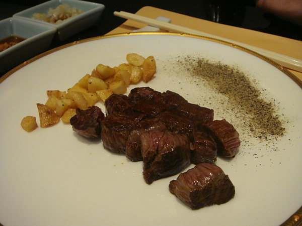姐姐的主菜:腓脷還是沙朗七分熟.我沒吃..因為我不吃牛..姐姐吃完後..我看到有盤上有血..都快暈倒了..心想..我以前怎麼敢吃啊..哈哈..