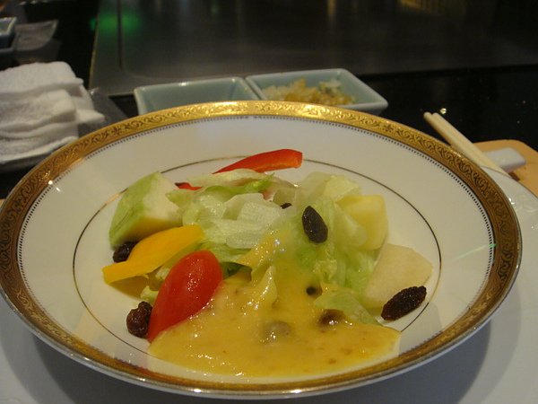 沙拉..我跟姐姐都選百香果醬..姐妹倆都走健康取向..酸甜的滋味..不知不覺竟把整盤菜給吃光了..