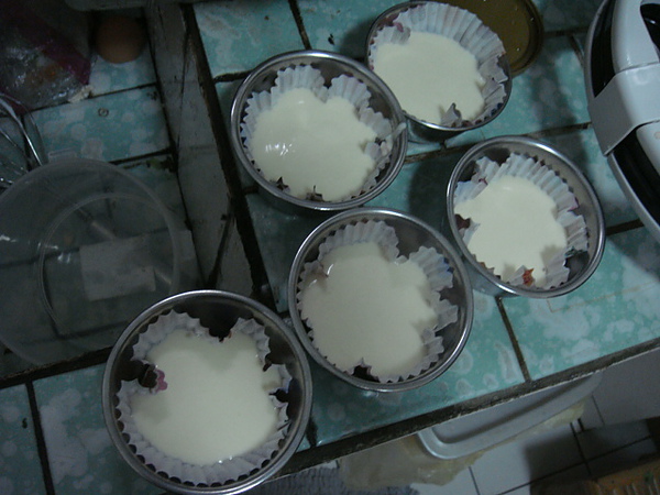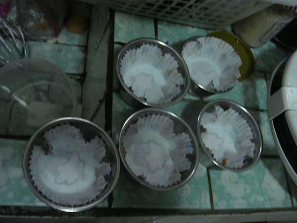 找了可愛的小烘紙..然後怕面糊太稀會流出來..所以用布丁盒裝著..