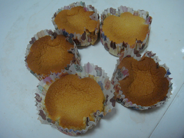 五個小蛋糕都是扁扁的..不知是經過了一夜變成降..還是本來昨天烤完就是降..