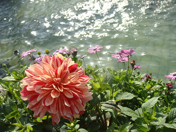 一片綠意..加上色彩繽紛的花..真舒服啊..