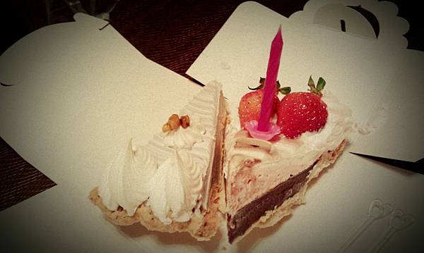 找半天找不到蛋糕店...還好有薔薇派...買了二塊還附了蠟燭.真是省下一個蛋糕錢啊..呵..