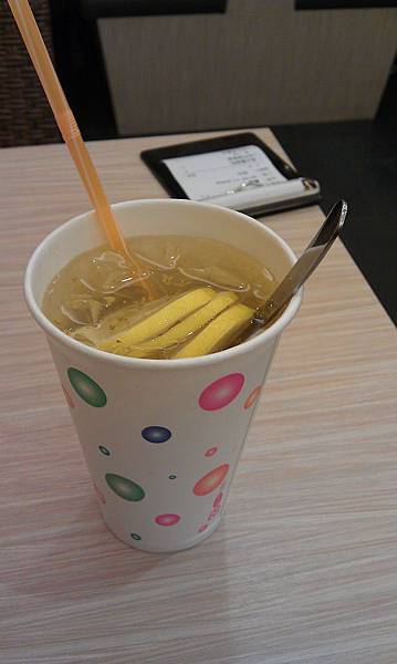 桂花檸檬蜜...把冰塊撈出來..喝起來冰度剛剛好..桂花很香..可惜用紙杯..感覺差了點..